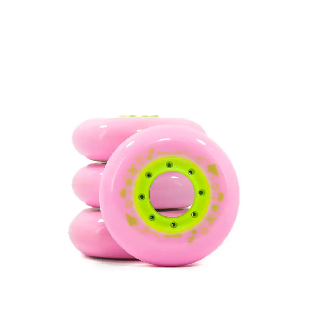 4 Rodas para patins inline 68mm RV Limits 83a Rosa e Verde