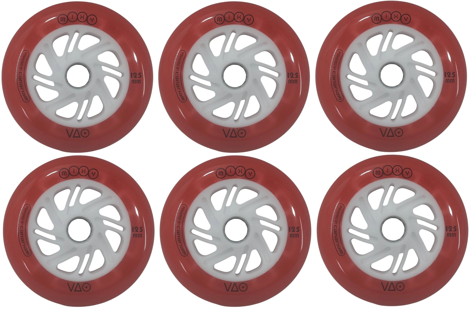 As rodas Canariam VAO Mixy LED de 125mm, em conjunto com 6 unidades, oferecem desempenho superior para Patins urbano e freestyle noturno.