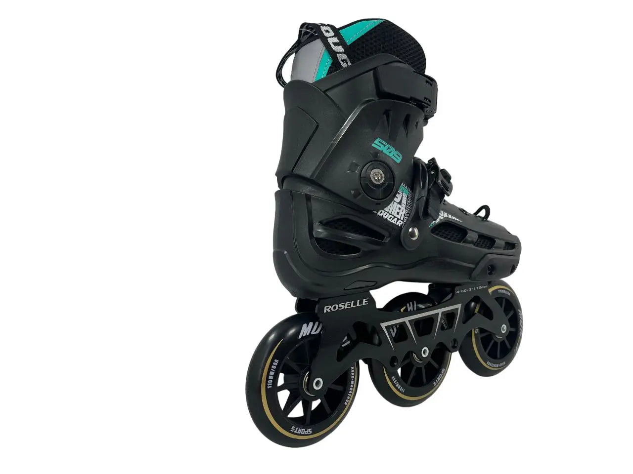 O Cougar MZS509C tem a base com distância entre as rodas das pontas de 255mm para 3 rodas de 110mm 85a. As rodas são muito confortáveis no asfalto e respondem com muito “rebound” na remada, a vontade é de acelerar o patins o tempo inteiro! Os rolamentos abec-9 da própria Cougar são silenciosos e muito soltos garantindo velocidade constante.