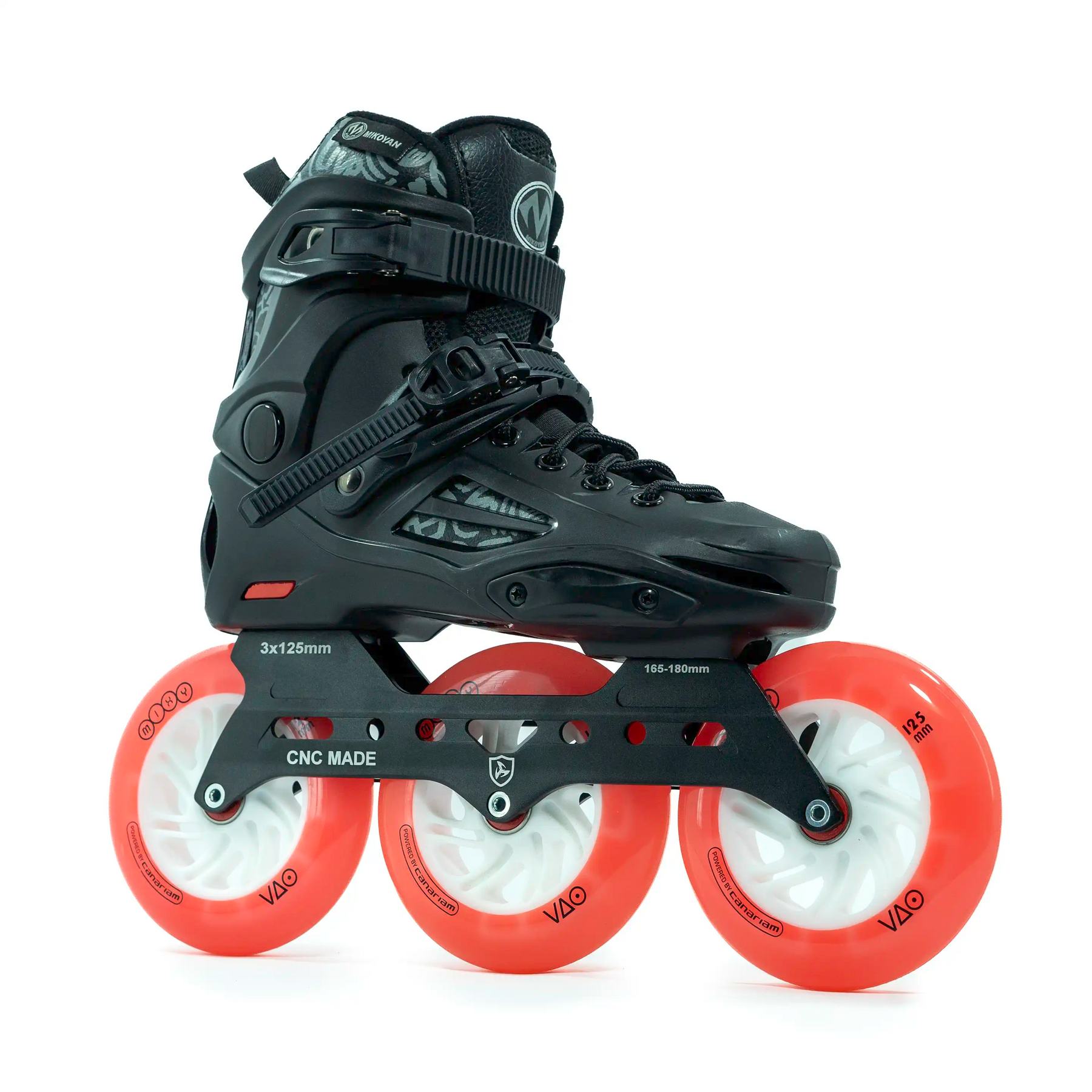 In this advertisement the Inline Munchi is equipped with a Traxart Vision base, 125mm Hd Inline 85a wheels and abec7 bearings.